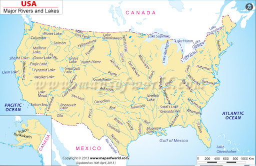 - Mapa dos Rios nos Estados Unidos da América, Mapa Rios EUA .